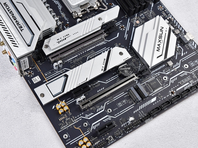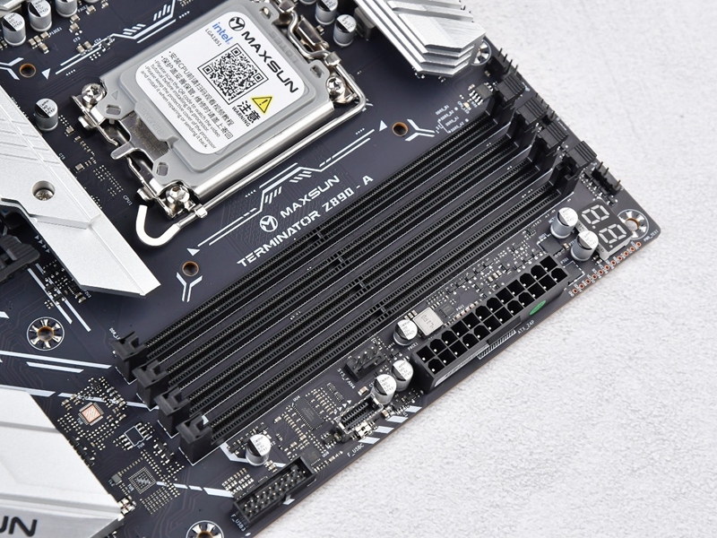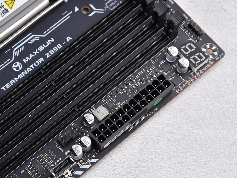 铭瑄 Z890-A WiFi主板在细节方面的布置同样非常贴心,在右上角设置了数显Debug诊断灯,方便玩家快速排查故障。
