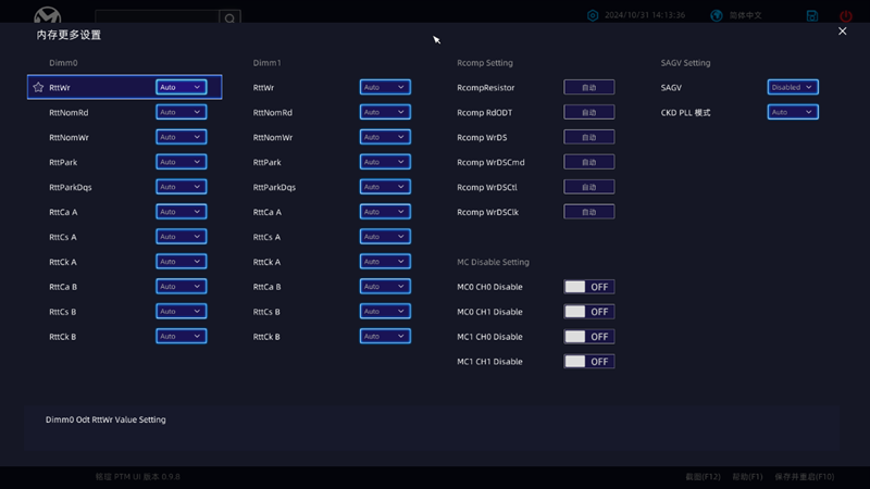 超频页面则围绕超频进行了参数设置,包括CPU的P核设置,E核设置以及电压模式,内存的Gear模式以及电压,在更多选项中提供了更加细化的参数调整,右侧则针对功耗和电压进行了设置。