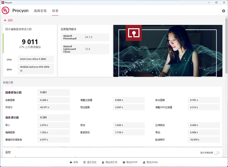 在生产力表现方面,我们先使用ULProcyon进行基准测试,其照片编辑基准测试分数为9011,视频编辑分数为9697,可以轻松应对图像和视频方面的内容创作。