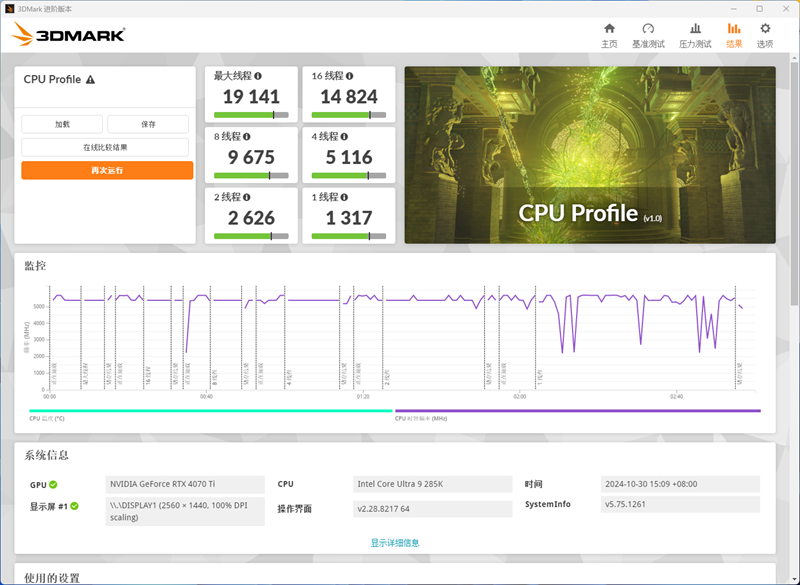 在3DMark测试中,铭瑄 Z890-A WiFi搭配酷睿Ultra 9 285K也取得优秀的表现,CPU Profile测试中,最大线程拿下19141分,TimeSpy测试中CPU获得18019分,FireStrike测试中物理分数拿下55353分,轻松超越了酷睿i9-14900K的表现,获得传奇的评价。