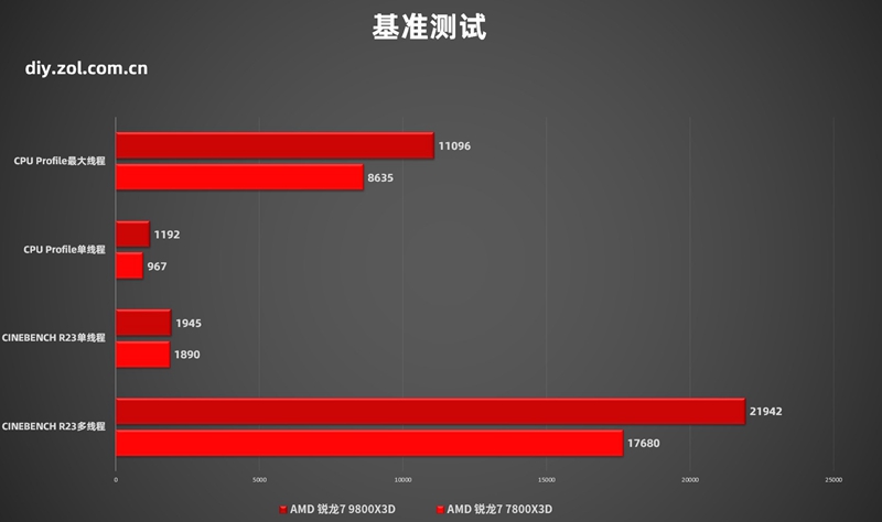 基准性能虽然对于AMD 锐龙7 9800X3D不太重要,但为了能更清晰的感受ZNE5架构的提升,我们也进行基准跑分测试。