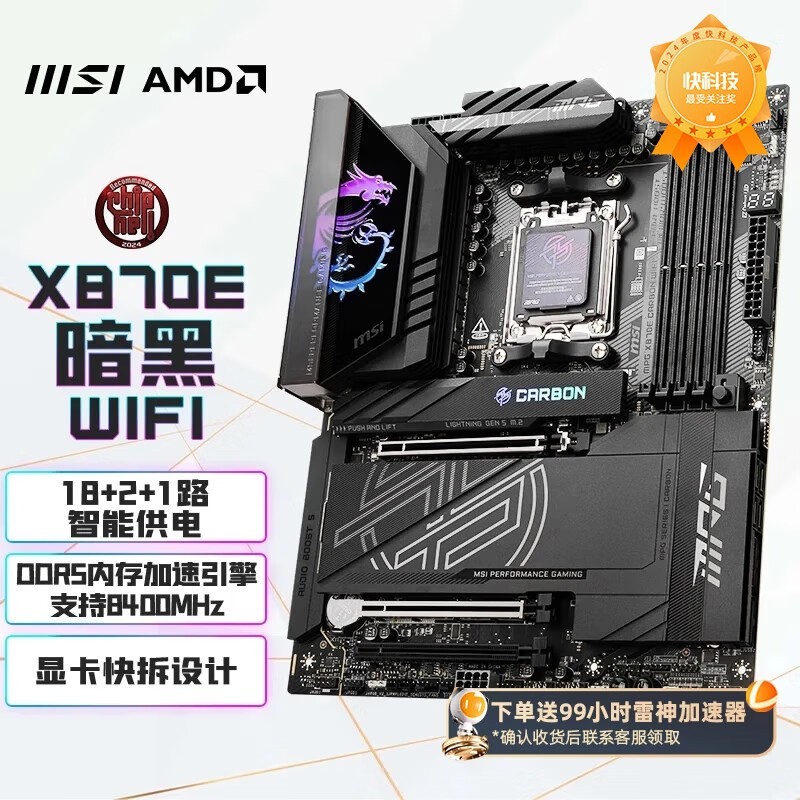 微星 X870E CARBON WIFI是一款高颜值高性能的大板。微星 X870E CARBON WIFI能够为电脑提供稳定而强大的性能支持,无论是在日常办公使用,还是运行大型游戏、进行专业图形处理等对电脑性能要求较高的任务时,都能表现出色。对于喜欢这款主板的朋友来说,这是一个不容错过的购买机会。