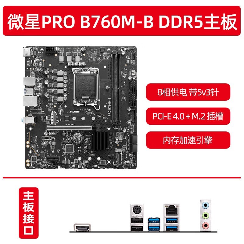 微星 PRO B760M-B爆破弹/迫击炮2代/Z790刀锋MAX/暗黑2代/超神/战神MAX D5主板 PRO B760M-B DDR5 单主板