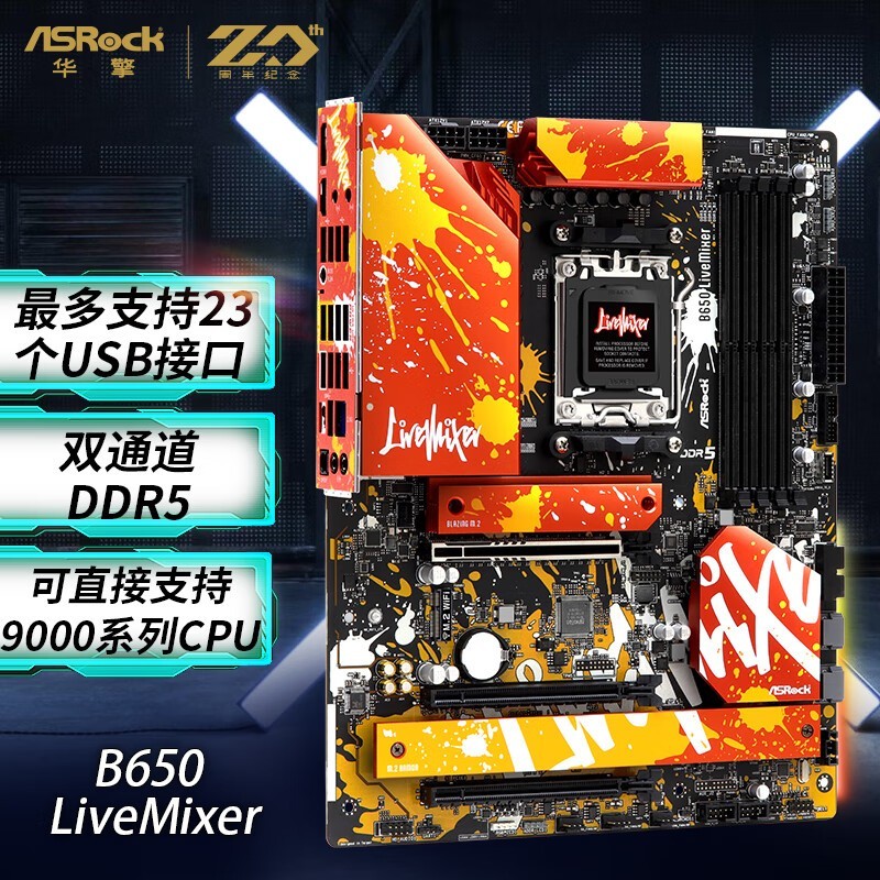 华擎 B650 LiveMixer主板 DDR5 支持9700X/9900X/7500F/7800X3D(AMD B650/Socket AM5)