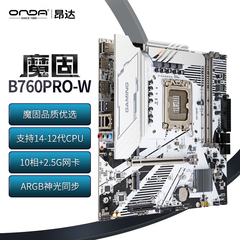 昂达 B760PRO-W(Intel B760 /LGA 1700)支持CPU14400F/13700/13490F 游戏电竞优选 主板