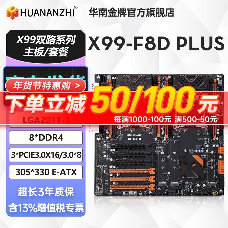 华南金牌 x99双路主板cpu套装游戏工作室设计渲染服务器模拟器多开电脑至强e5 2696v3 2680v4 2686v4 X99-F8DPLUS(8*DDR4内存槽)