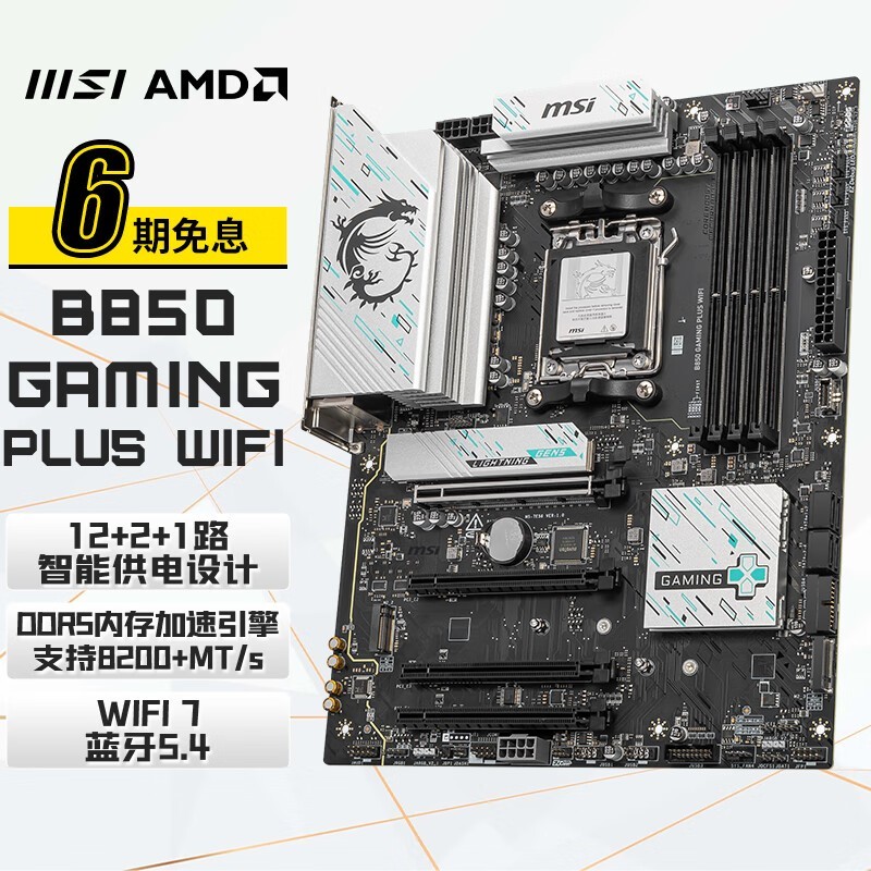 微星 B850 GAMING PLUS WIFI电脑主板 支持CPU AMD 7800X3D/9700X/9600X(AMD B850/AM5接口)
