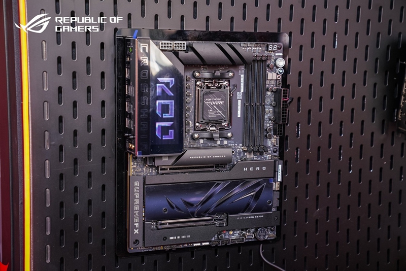 而ROG CROSSHAIR X870E HERO主板是AMD锐龙9000的绝佳搭档。奢华的设计,质感非凡。豪华供电和高效散热设计,支持AI智能超频和混合双模超频,让锐龙9000的高性能全面释放。5个M.2,双USB440Gbps接口,2.5G+5G双有线网卡,加上WiFi7无线网卡,享受高速扩容和飞一般的传输体验。