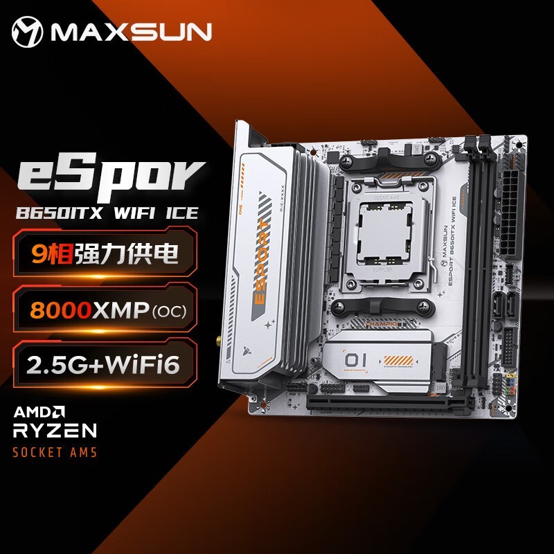 铭瑄 B650ITX WIFI ICE 电脑主板 支持CPU 9800/7800X3D/7600X/7500F (AMD B650/AM5接口)