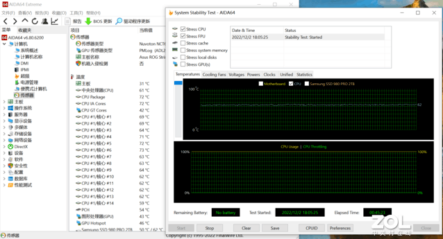 在使用360mm水冷的情况下,复印机测试没有压力,在华硕 Z790-A GAMING WIFI D4上只有72℃左右雪D4主板上只有72℃左右,非常健康,可以承载超频等高级设置要求。