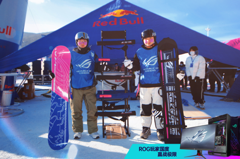 此次,华硕计算机中国区开放平台主板产品总监张楠和华硕计算机中国区开放平台外设产品总监张鹏也受邀参加开放仪式,并带来ROG&奥地利RedBull联合定制滑雪板。