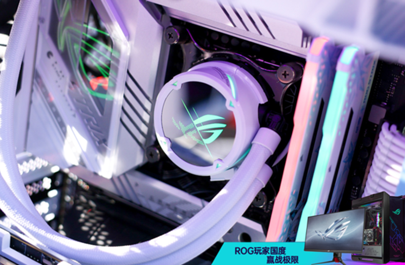 机箱采用ROG STRIX HELIOS太阳神雪武战姬定制版机箱作为主机的面值,增加了多面UV印刷和复合LED灯板,充满了科技感,雪武战姬的二次元形象与现场冰雪的环境更加和谐。ROGSTRIXLC吹雪360ARGB水冷散热器,整体采用纯白色配色,面值拉满!定制ARGB风扇+AURASYNC神光同步技术,随时与玩家当前的电竞气氛相匹配。3个12cm风扇采用ROG自研的ARGX风扇,全面加热玩法,全面加热玩法。