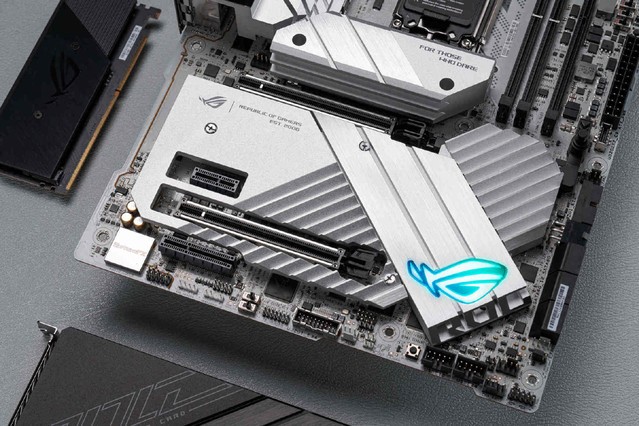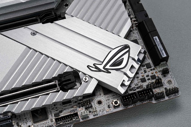 ROG Z790-A主板是为极限性能爱好者和骨灰级游戏玩家量身定制的。它不仅性能强大,而且设计独特。它有一个纯净优雅的白色外观。大面积散热器采用交错堆叠的形式,呈现APEX主板的标志性“X”形状。芯片组散热器的斜切面也有独特的ROGLOGO字样,显示出信仰的力量!