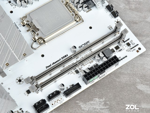 单8pin设计了昂达Z790PLUS-W主板的CPU供电接口,最大可承载380W功耗,推荐与13代酷睿i7及下级处理器一起使用。该接口的朝向避免了安装时顶部风扇卡手的问题。