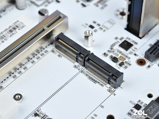 由于M板比较紧凑,所以这个主板只有两个内存插槽,支持DDR4内存,频率可达3600MHz,而且还采用了金属插槽设计,更加坚固耐用。