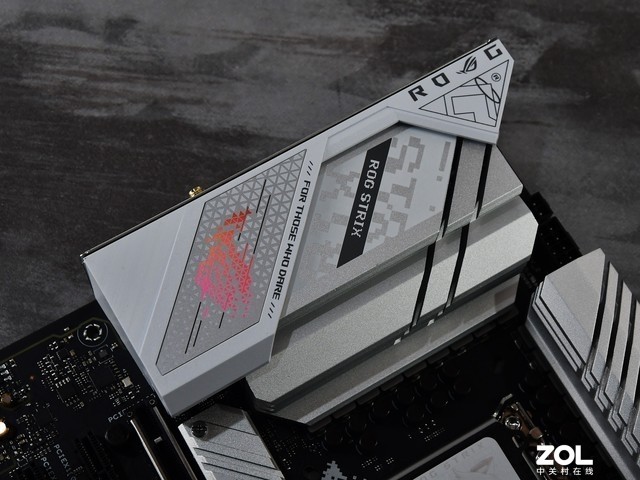 有两个M.2插槽,全部支持PCIe4.0,配有金属装甲散热器,顶部直接连接CPU,另一个采用PCH。两个M.2插槽都采用了无螺丝安装设计。