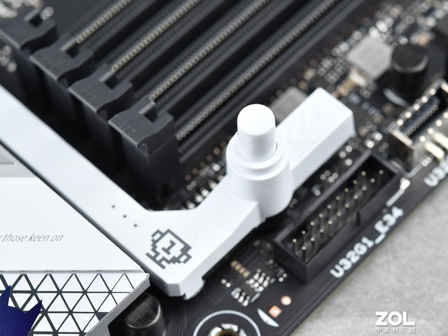 华硕 B760-G GAMING WIFI D4主板白色元素主要在装甲部分,PCB并未完全涂白,但PCB到处都是丝印像素彩蛋,甚至连背板都没有掉下来。