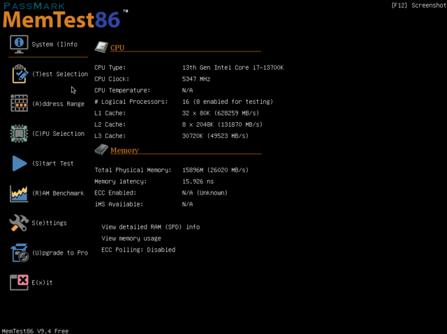 首先,我们进行内存测试,当使用酷睿i5-13600K时,内存可以稳定在Gear13800MHz,而Gear14000MHz则非常不稳定。但是,当换成酷睿i7-13700K时,很容易达到Gear14000MHz。