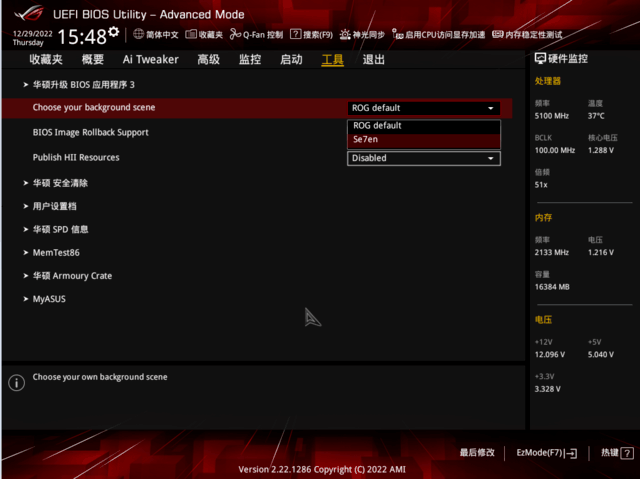 该工具界面不仅可以升级BIOS,还可以支持Se7en主题、切换、选择后,BIOS和启动加载界面将成为吹雪风格。