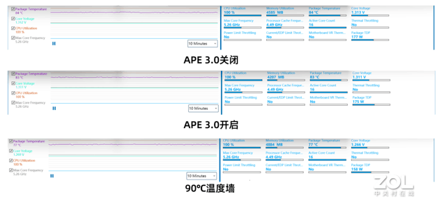 在温度方面,我们使用酷睿i5-13600K进行CPU拷贝测试,CPU软件是AIDA64。除华硕APE3.0外,还增加了90℃温度墙测试。