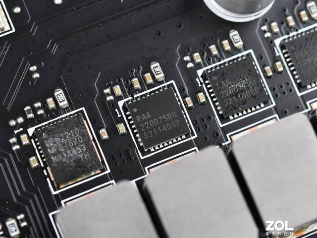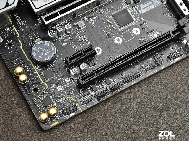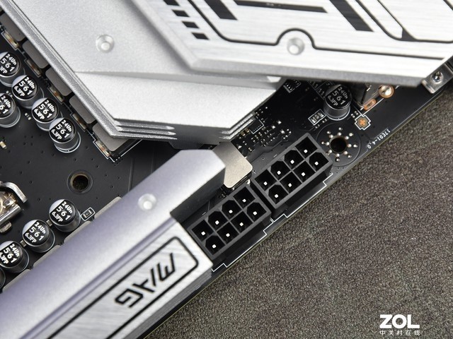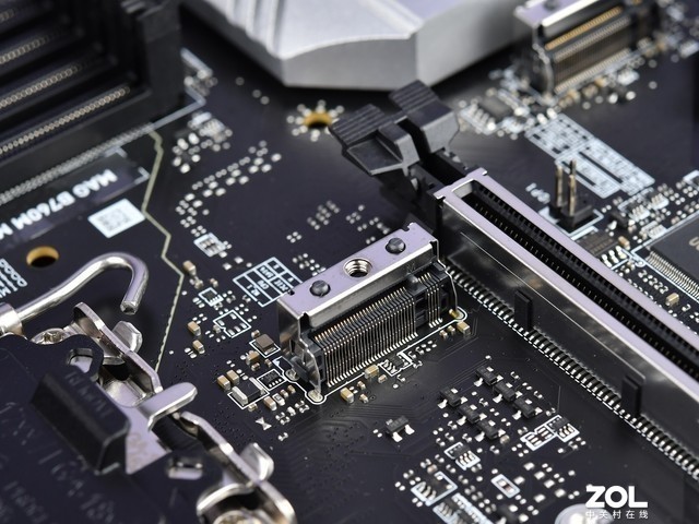 有两个M.2插槽,全部支持PCIe4.0,其中一个直接连接到CPU,自带冰霜散热装甲,并且设计了无螺钉安装卡扣。