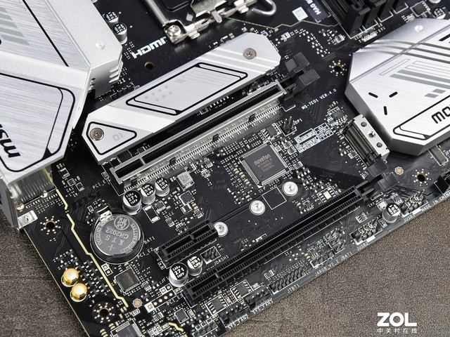 WIFI主板为微星 B760M迫击炮提供两个PCIex16长插槽,第一个插槽采用金属装甲设计,并能支持PCIe5.0x16带宽。第二个是PCIe4.0x4带宽。