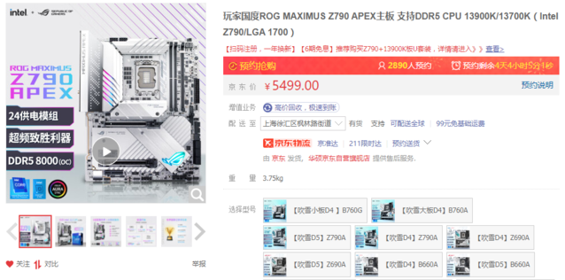 且天猫商城还有华硕Z790吹雪主板搭英特尔 i9-13900KS处理器套包,8999元火爆促销中。