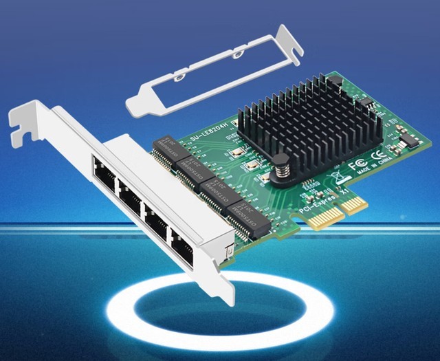 All in one NAS硬件配置有多个网络接口的需求,而只配备了一个2.5G网口,因此可以考虑购买一块PCIe接口的四口千兆网卡,例如这块EB-Link,使用的是Realtek的8111方案,价格还算便宜,如果想要更高的性能和稳定性,可以考虑Intel的网卡,但是价格也贵了一倍多。
