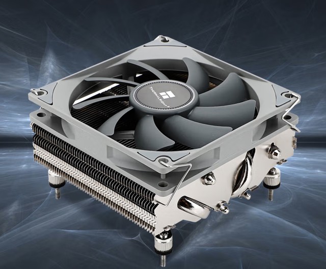 由于CPU没有配备散热器,需要自行配备。考虑到这种小身形NAS机箱的内部安装空间,以及CPU本身的发热情况,可以搭配利民AXP90-X47下压式风冷散热器即可,它采用四热管设计,配备9cm大尺寸超薄风扇,满速风量、散热和整体的高度需求。