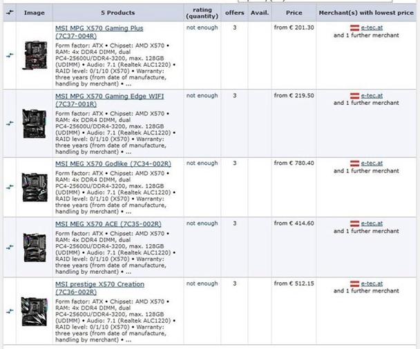 可以看到,这代的X570主板并不便宜,旗舰的MEG X570 GODLIKE售价高达780.4欧元(约6030人民币),但是因为侧面也说明了这次的三代锐龙性能会有很大的提升,才会让厂商做出这些高端主板。