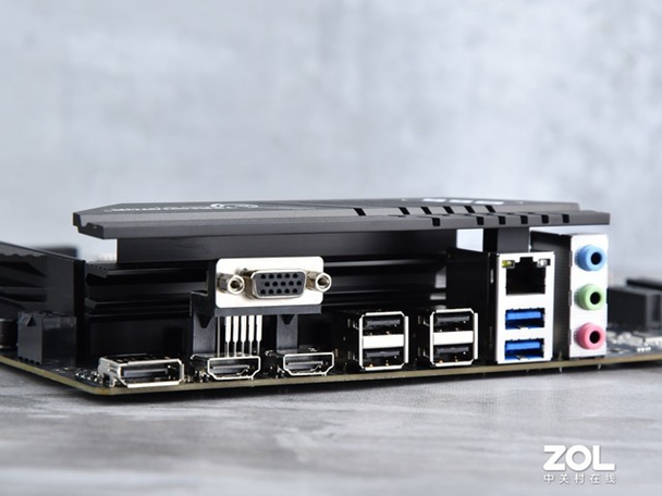 除了视频接口外,此款主板提供更多还2个USB 3.2 Gen1接口,4个USB 2.0接口,一个有线网络接口和3个常规音频接口。另需注意此款主板没有预装I/O隔板,隔板在配件中,记得装机时不要忘了。