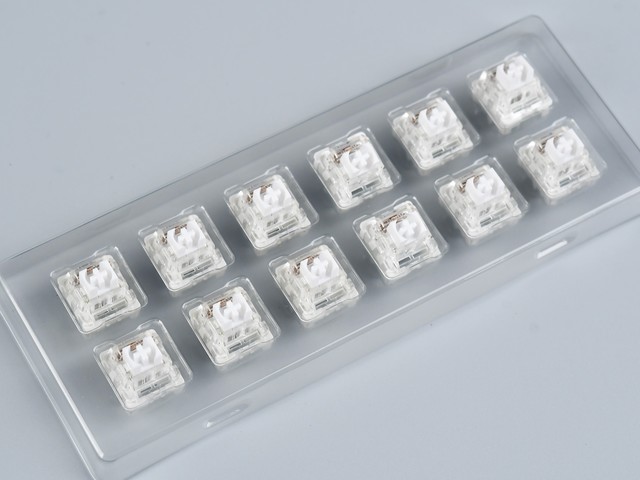 另外,与新品键盘同时间段内上线的还有雷柏KA-12线性弹白轴。这款轴体拥有35gf触发压力、3.4mm的总行程与1.2mm的触发行程,仍然是一触到底的线性轴体。它的手感比线性快银轴更轻,触发更快,因此在玩游戏方面的体验也是另一个风格。它的轴心采用了POM材质,手感润滑,耐用度高,并且具有防尘设计也,可以避免灰尘和烟灰等粉尘的入侵,配合透明轴盖,不论是灯效表现,还是手感稳定度方面都能够得到保证。