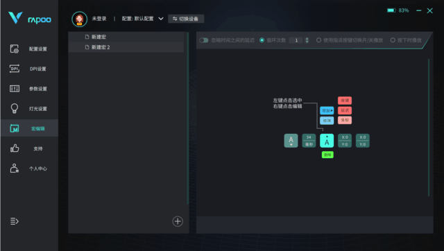 雷柏 V300W的驱动依旧与VT鼠标系列新品的驱动做整合,多个鼠标只需通过一个驱动来设置即可。这款驱动我们也多次介绍了,它可调节鼠标性能参数、按键功能、以及宏命令录入。