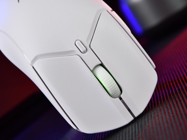 HyperX 旋火2侧键部分,它的两枚侧键位置合理,且依旧不存在空键程,手感一致度高,触底没有绵软的问题,并且不容易误触。这两款鼠标的外壳采用磨砂质感,不易打油。如果使用附件中的防滑贴,还能进一步增强鼠标的摩擦力,即使在有手汗的情况下也不易打滑,适合激烈的游戏战斗。上壳采用一体式不打孔的设计后,我们也就无须担心灰尘进入,或者是留存污渍的问题了,总体来说体验是正提升。