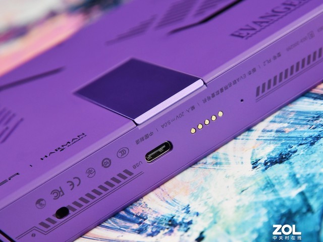 OneXPlayer 2Pro EVA联名限量版三合一电脑游戏机整体采用了EVA初号机的配色风格,机身全部采用紫色涂装并且丝印一些EVA有关的DIY元素。产品尺寸长310mm,宽127mm,高23mm,是一款偏大的游戏机,倒是挺符合初号机巨型机体的设定。