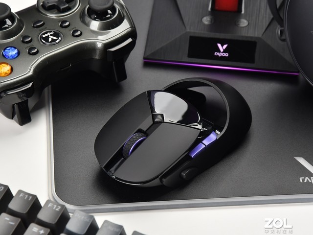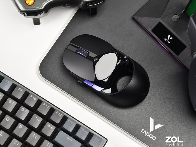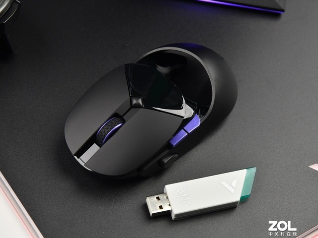 这次雷柏搭载V+无线游戏技术,采用Nordic低功耗芯片,内置雷柏自主研发的智能省电算法,鼠标会在工作、睡眠、唤醒的不同状态均保持较低功耗。同时这款鼠标最多能支持10m+无线传输距离,拥有FPC独立天线,自适应信号增强以及变频档位调节等配置,这有效提升了无线连接的抗干扰能力,并带来1ms响应速度,超低延迟响应,并且这款鼠标支持V2M接收器,最高能将回报率提升至4000Hz。