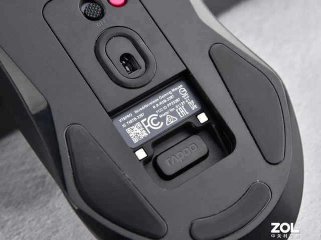 雷柏 VT9PRO双模无线游戏鼠标的无线接收器位于底部,采用磁吸设计,这个原装接收器支持1K回报率,可以额外购买适配V2M 4K接收器,并且最新的驱动支持接收器切换,可以通过4K和1K接收器操作两台电脑。雷柏自研了V+Wireless无线游戏技术,能够实现1ms超低延迟,不用担心延迟影响鼠标操作,同时雷柏采用Nordic低功耗芯片,结合雷柏自主研发智能省电算法,能实现160小时+的超长续航时间。