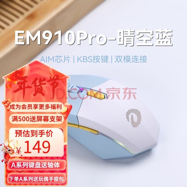最后,我们将介绍达尔优(EM910pro)无线有线2.4G双模轻量化游戏电子竞技机械鼠标。除了强大的无线电池寿命外,鼠标还引入了一种独特的材料,称为“釉下青”,使握持感觉更舒适。同时,该产品的定价更合理,对普通用户非常有吸引力。