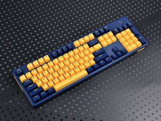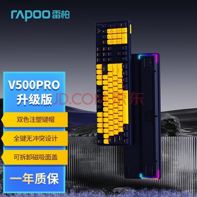 雷柏 V500PRO黄蓝升级款 104键有线背光机械键盘 PBT双色键帽电脑办公游戏全键无冲可编程键盘 茶轴