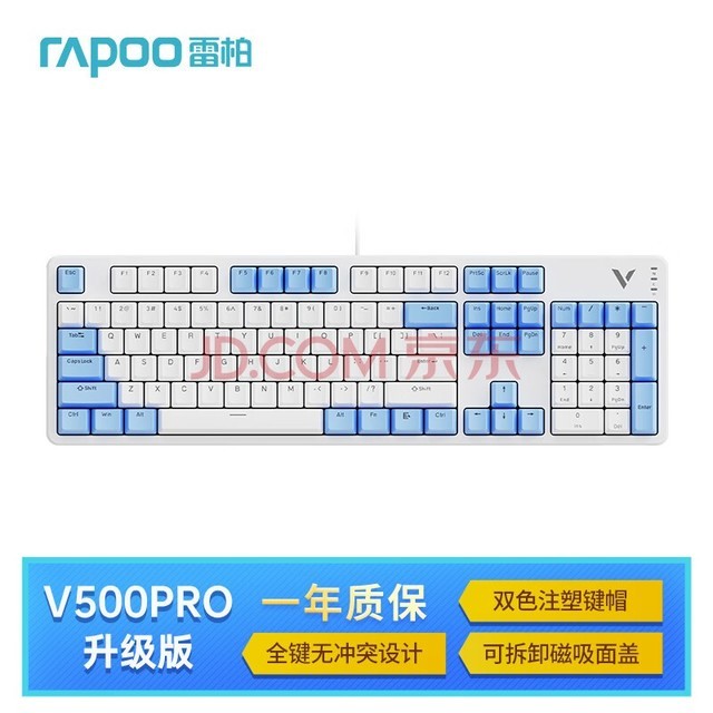 雷柏 V500PRO白蓝升级款 104键有线背光机械键盘 PBT双色键帽办公游戏全键无冲可编程键盘 快银轴