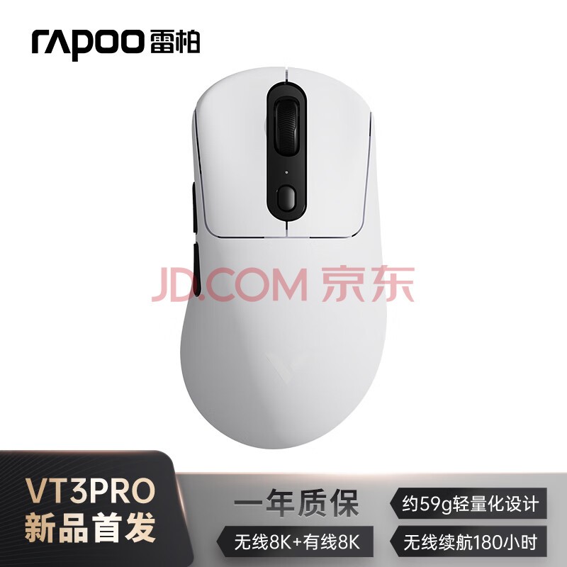 雷柏 VT3 PRO双高速版 中大手无线/有线双模游戏鼠标 轻量化设计原相3398引擎支持4K+8K回报率 白色