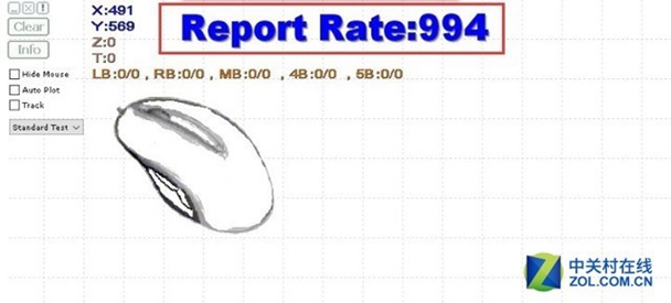 卓威S系列鼠标的最高回报率为1000Hz,符合一款性能级游戏鼠标应有的表现,而在实际测试中也确实验证了这一结果。