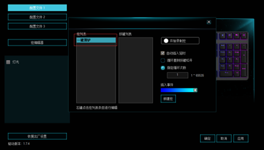 步骤一打开驱动,选中雷柏 V700RGB合金版的宏编辑,点击宏编辑器,再点击右下角的新建宏,命名为一键滑铲。