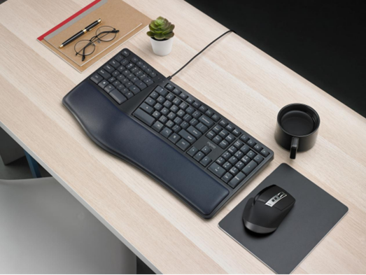 雷柏 NK8800键盘采用分体式设计,模拟指尖弯曲弧度按钮,按键布局也是根据手腕自然下垂的姿势进行的,这样用户就可以减少手指和手腕开始舒适健康的办公之旅。按钮布局下方是一个自然弧度的垫底支架。在17°的黄金放置角度下,手腕始终保持在舒适的位置,手臂自然伸展,配合键盘背设脚架,灵活调整工作角度,使舒适向前迈出一步,长时间代码亲密助手。