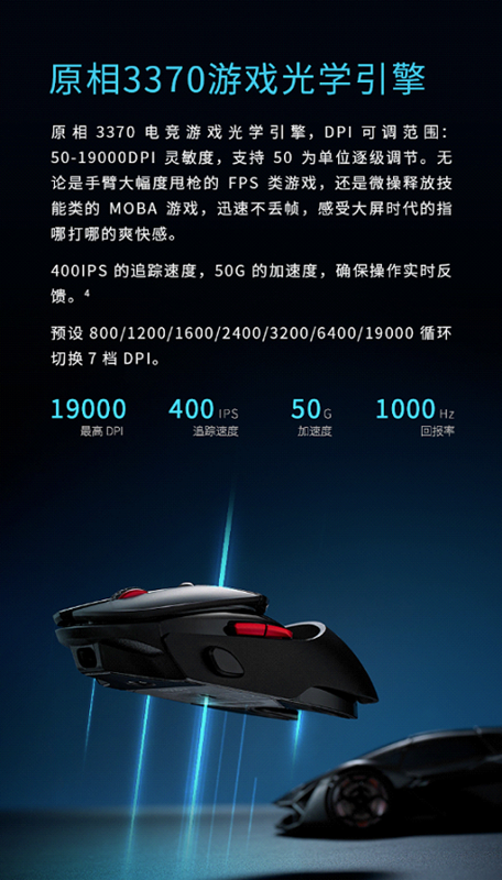 雷柏 VT960S采用原相3370电子竞技级光学游戏引擎,准确定位每一帧,1ms快速响应,可以更好地帮助玩家实现游戏中的各种细节。帮助玩家更好地玩A、光速QA等细节,就像物理插件一样。预设800/1200/1600/2400/3200/6400/19000,7档可循环切换DPI。9个可编程按钮包括狙击按钮。通过驱动设置,根据不同的游戏调整适合自己的灵敏度,录制自定义宏,简化复杂性,方便快捷。笔记本电脑推荐,性价比高的电脑,电脑配件的最新报价尽在ITCN。