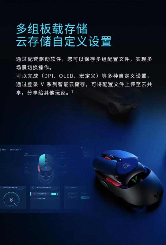 新旗舰雷柏 VT960S还配备了强大的独家驱动软件,可以完成DPI、照明、OLED、宏、云同步等几乎所有雷柏 VT960S设置,简化复杂性,开启智能游戏的新时代。