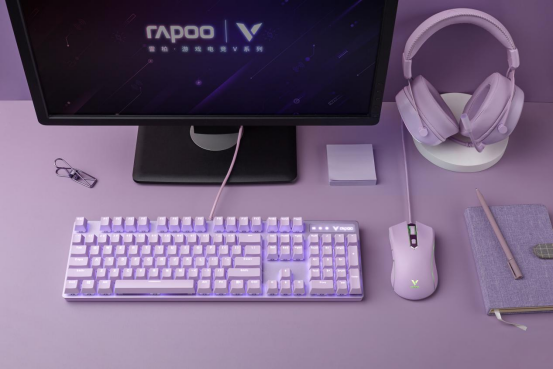 VH650虚拟7.1声道游戏耳机,V500PRO游戏背光机械键盘,雷柏清紫电子竞技游戏外设V系列全家桶上线,刚柔交融,清冷热情的和谐,展望未来,热血追求梦想!
