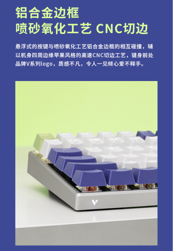 悬挂式按键与喷砂氧化工艺铝合金框架的碰撞也是无人区的亮点之一,辅以机身四周边缘苹果风格的高速CNC切割工艺,以及关键身体前方的品牌V系列标志,质感非凡,让人一见钟情。