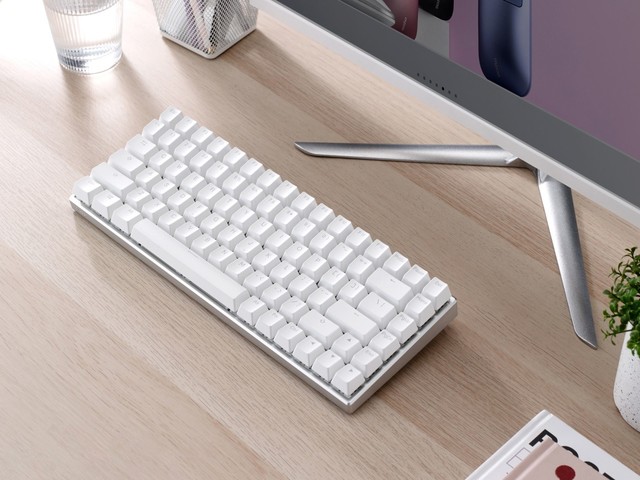 纯白键盘与桌面的和桌面清晰、清晰、干净。雷柏 MT510有线背光机械键盘拥有自主线性快银轴、PBT双色注塑键帽、Win系统13个多媒体快捷键,实现商务办公与桌面艺术的个性化结合,打造清新舒适的新办公体验。