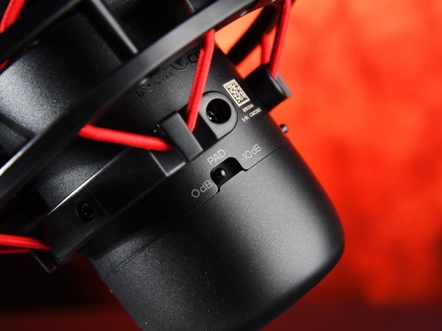 这款麦克风机身集成了一个控制面板,有两个功能切换开关。它们可以控制机身配备的80Hz高通滤波器和-10dbPAD的无源衰减。这两个特点可以消除录音时的无用噪音,帮助麦克风处理高压音频源,可以收集到更纯粹的声音信息,录制高规格的音频。也让它与自己的普通PC游戏麦克风不同,向专业群体市场迈进一步。